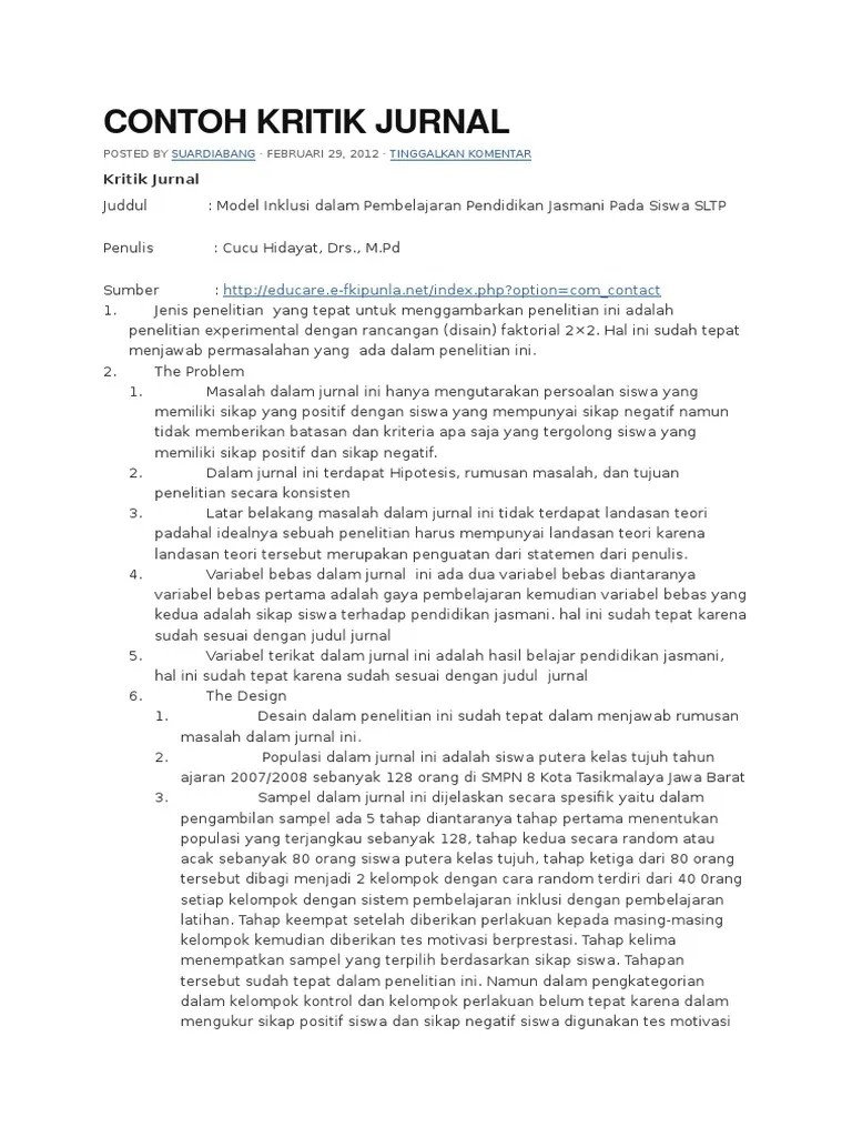 Contoh Kritikan Jurnal Yang Baik : Contoh Kritik Pengertian Ciri Fungsi Macam Dan Contoh